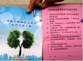 姚医生为同学们发放防治结核病资料讲解相关知识