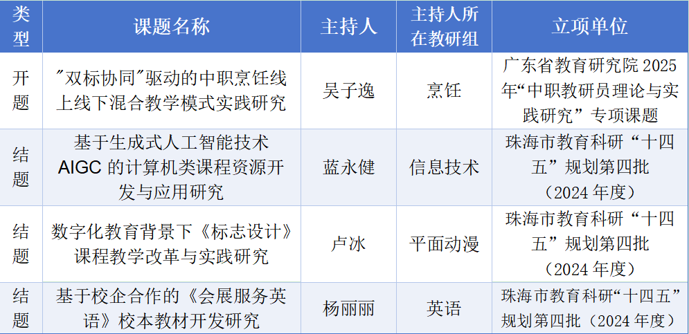 2025年6月17日,我校先后召开了广东省教育研究院2025年“中职教研员理论与实践研究”专项课题开题报告会和珠海市教育科研“十四五”规划第四批(2024年度)课题结题鉴定会。会议邀请了广东科学技术职业学院商学院副院长、管理学教授赵莉,珠海市卫生学校护理专业科主任、正高级讲师黄惠清,广东科学技术职业学院商学院电子商务专业教师、副教授翟小可组成专家组,我校周导元副校长、教研室成员、课题主持人及主要成员出席了会议。权威专家与课题组成员齐聚一堂,以课题研究为纽带,共探教育科研发展新方向。