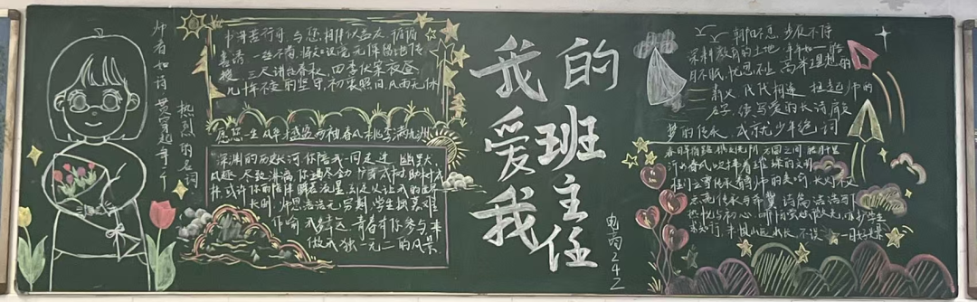 自5月5日起,“最美班主任” 黑板报活动在全校各班火热开展。同学们化身 “创意达人”,巧妙运用彩笔、图画、文字,将对班主任的敬爱之情融入黑板报创作中。有的班级用细腻的笔触描绘班主任日常工作的场景,有的班级用暖心的话语表达对班主任的感恩。5 月 13 日,学校对黑板报进行集中检查,一幅幅主题鲜明、设计精美的黑板报,成为校园里一道道靓丽的风景线,无声诉说着师生间深厚的情谊。
