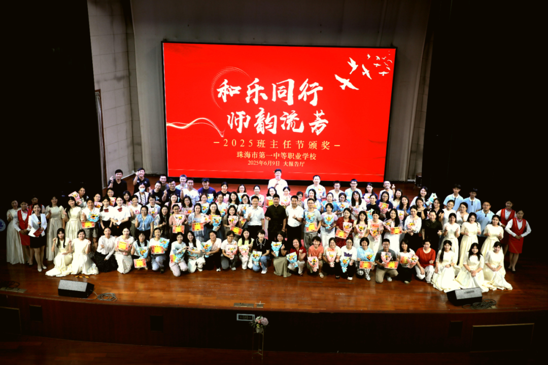 6月9日,珠海市第一中等职业学校 “和乐同行 师韵流芳” 班主任节庆典暨体育艺术节颁奖晚会在学校礼堂璀璨启幕,为历时一个月的 “和乐校园 最美班主任” 系列活动画上圆满句号。校领导、家长代表、全体班主任及学生代表齐聚一堂,共同见证这场充满温情与敬意的师生盛会。