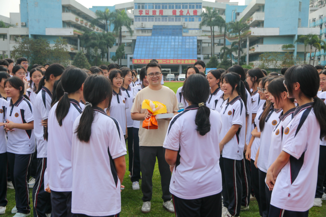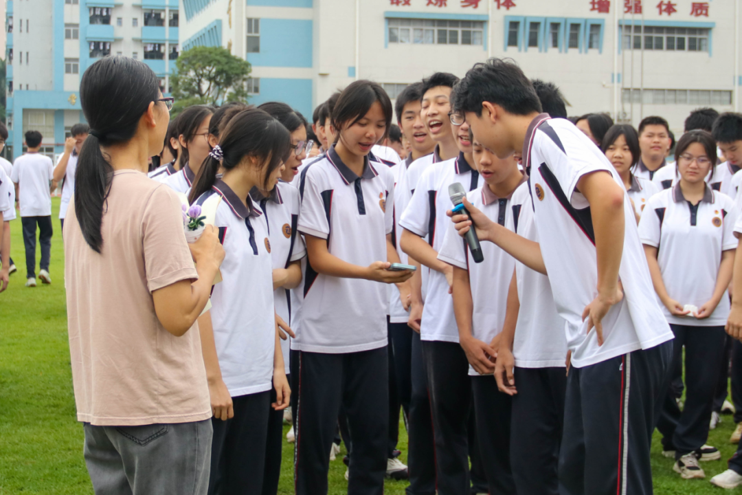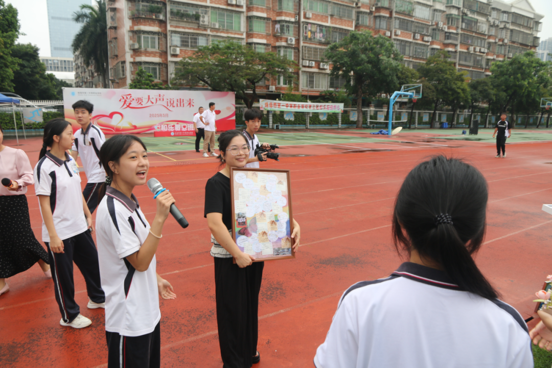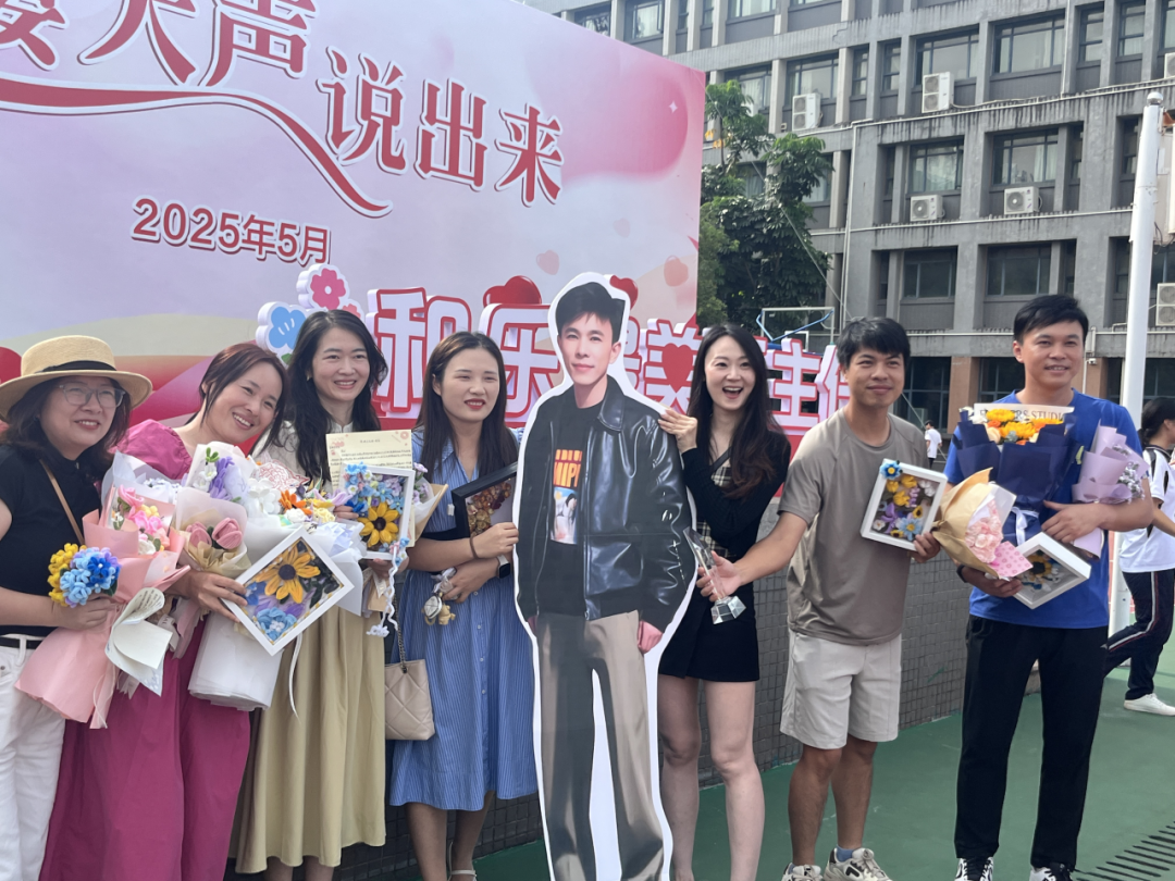 5月28-29日,“爱要大声说出来” 现场活动成为整个活动的高光时刻。活动现场,各班同学精心准备,依次完成 “送信”“献礼”“喊话” 三项任务。在 “送信” 环节,同学们将写满心意的信件亲手递到班主任手中;“献礼” 环节更是惊喜不断,手工制作的纪念册、创意十足的手工艺品、深情动人的歌曲演唱,承载着同学们满满的爱意;“喊话” 环节,各班同学齐声喊出对班主任的感恩话语,“亮(梁)丽全场,飒飒(莎莎)超靓!舞台女王,势不可挡!”“理(李)性思维启数媒,力(理)量无限创未来!”“乘(陈)风破浪,名(铭)扬四海,一(仪)世无双,风华绝代!” 等声音响彻校园,不少班主任感动得热泪盈眶。活动结束后,各班提交的创意合影和精彩视频,也为这段美好回忆留下了珍贵记录。