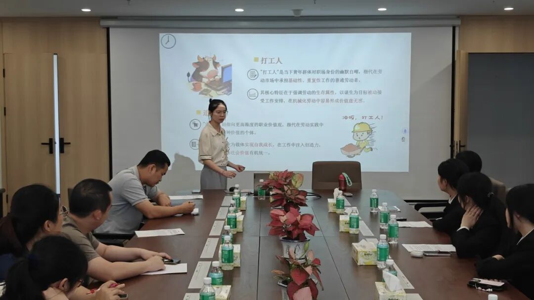 在本次“思政课堂进企业”活动中,我校思政工作室的魏息平老师担任主讲,她以“从‘打工人’到‘追光者’—职场心态”为主题,讲述了在职场中,随着同学们经历的增长和自我认知的提升,应逐渐找到了自己热爱并愿意为之奋斗一生的事业方向,从而成为了追逐梦想的 “追光者”。在追求梦想的道路上,需要通过实际的工作来积累资源和经验,以务实的工作态度为实现梦想打下基础。