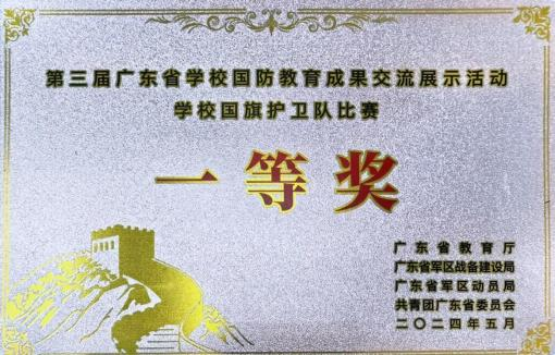 珠海一职国旗护卫队多次代表珠海市参加广东省学校国防教育成果交流展示,在第三届广东省学校国防教育成果交流展示活动中获一等奖。在本次活动尾声,国旗护卫队以一场气势恢宏的队列展演将交流推向高潮。队员们以整齐划一的步伐、铿锵有力的动作完成升旗仪式及战术操演,展现了职教学子昂扬的精神风貌和深厚的爱国情怀。
