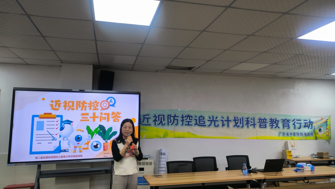 为进一步增强学生保护视力、预防近视的意识,养成青少年良好的用眼卫生习惯,学校积极开展以“睛彩瞳年”为主题的视力保健教育活动,3月17日我校香华校区邀请广东省中医院(珠海院区)眼科郑丽绵主任开展近视防控教育讲座。