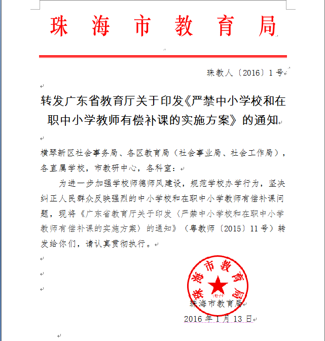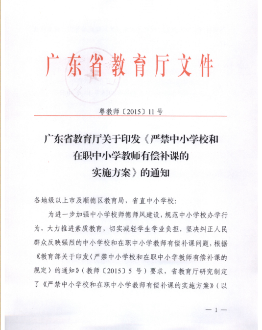 转发广东省教育厅关于印发《严禁中小学校和在职中小学教师有偿补课的实施方案》的通知