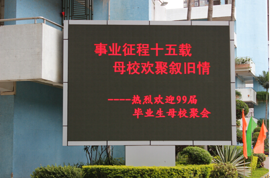 事业征程十五载,母校欢聚叙旧情。2014年5月 31日下午,香华校区热闹非凡,我校99届毕业生200多人在曹敏老师和学生干部林栋恒、莫日明、方娟妹、杨铮、杨永雄、张志伟等同学的组织发动下,聚首母校,共叙情谊,在同学们热情邀请下,当年和现在学校的部分领导和老师曹风云、官伟强、詹红红、甘朝威、 仇建平、曾昭宏、 回新岭、王保荣、卓小明、李守连、林进生、杨柳燕、周新桥、赖雪琴、 季丽珍 、全红、华卫红 、高光明、 粟慧平 、许艾君、 黄丽娟等参加了聚会。同学们身着“十五情怀,九九相聚”的蓝色T恤,游走在校园的每个角落,去当年上课的教室小坐一会儿,看到师弟师妹们留在黑板上的欢迎标语,同学们感慨万千,昔日在母校学习和成长点点滴滴,对于每一位同学来说,都是一份美好的记忆,一份难舍的牵挂。
