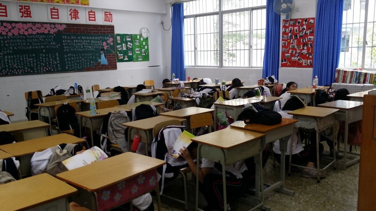 学生在教室中紧急避难