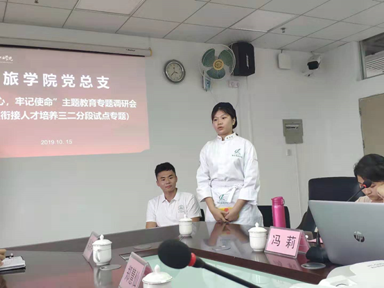 此次交流会上,从一职校毕业目前在工程学院就读大二的烹饪专业的孩子们也向母校的领导和老师们汇报了自己在工程学院这一年多以来的成长和收获。他们一致表示,是因为在一职校的夯实技能为自己打下了良好的基础,进入到高职院校之后随着理论知识的提升,能够渐渐地把理论联系实际,将中高职所学的知识和技能贯通在一起,真正地实现了中高职的学习贯通。同时许多同学认为升上高职院获得了一个更大的平台,不仅在知识技能上不断提升,同时更加学会了做人做事的道理,更加明确了自己的方向和目标,对自己的未来充满信心和期许。听了同学们的汇报,邓谦副校长表示非常高兴看到同学们的成长,他表示此次代表学校来看望大家,勉励同学们能够不忘初心,坚定自己的烹饪梦想,在高职院要脚踏实地安心学习、不断提升自我,树立信心和目标,时刻记住母校对大家殷切的期望,母校也永远是同学们强大的后盾。