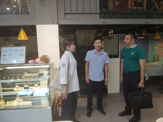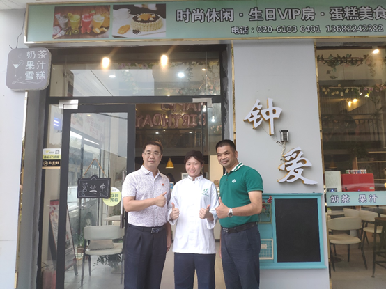 会后,在优秀毕业生冯巧巧的陪同下,双方领导和老师还专门到了冯巧巧同学目前技术入股的一家点心门店去参观,了解她的创业情况。这是巧巧联合了另外两位小伙伴在当地公益人士的资金支持下参与技术入股的一家餐饮店,她主要负责店内所有点心的制作、DIY蛋糕活动的组织和教学等,目前运营是比较顺利的。她表示创业是自己的梦想,也是提升自己实际操作的最好方式,在整个创造业绩的过程中拓展了自己的社交圈,学习了为人处世的方式方法,也寻找到了自己未来的方向和目标,这才是年轻人创新、创造、创业的初心和使命。