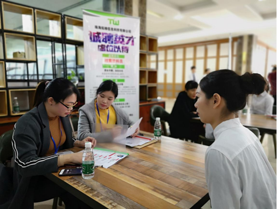 推荐会现场人头攒动,学生们都积极参与其中,希望通过这个平台找到理想的职位,面对各企业HR的询问,学生们大方应对,表现出良好的职业素质,让前来招聘的企业赞口不绝。高职部小帆同学在招聘会现场已经投完手上两份简历,她发现自己简历中虽然没有突出的专业技能,但是优秀学习成绩单和获奖信息让自己颇为抢手,并且两家企业都已经确定录取她,通知她下周开始上班,她很是开心,不少学生也现场达成初步就业意向。