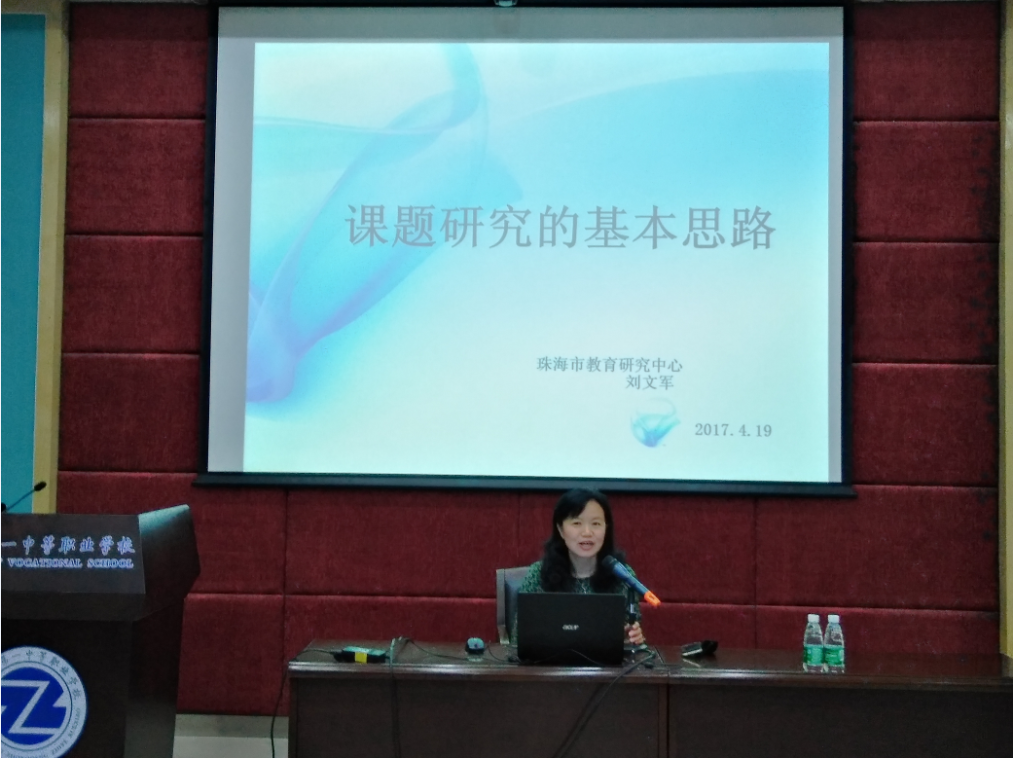 为提升学校及教师教科研课题选题、研究方案设计的能力,提升课题申请立项的成功率。4月19日下午,学校特聘请珠海市教育科研领导小组课题指导专家刘文军老师为老师做了课题申报要求、课题设计方案材料撰写、教育科研的基本流程和研究方法策略的专题培训。参加本次培训的有周广大副校长、学术委员会委员,在研课题主持人、专业负责人、专业带头人、学科组长、专业与学校骨干教师及各类工作室主持人,本次活动由教研室主任叶振龙主持。