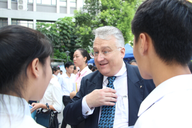 这是发生在今年实习推介会上真实的一幕,外籍厨师长是珠海御温泉的行政厨师长,法国人尼古拉。他说自己是第一次来我校,对优美的校园环境和毕业生的综合素质非常满意。至于谈到更倾向于选择什么样的实习生时,他表示会更喜欢受过良好教育,尊重人,能够坚持做自己喜欢的事情的人。他觉得这次来珠海一职校,找到了自己想要找的学生。