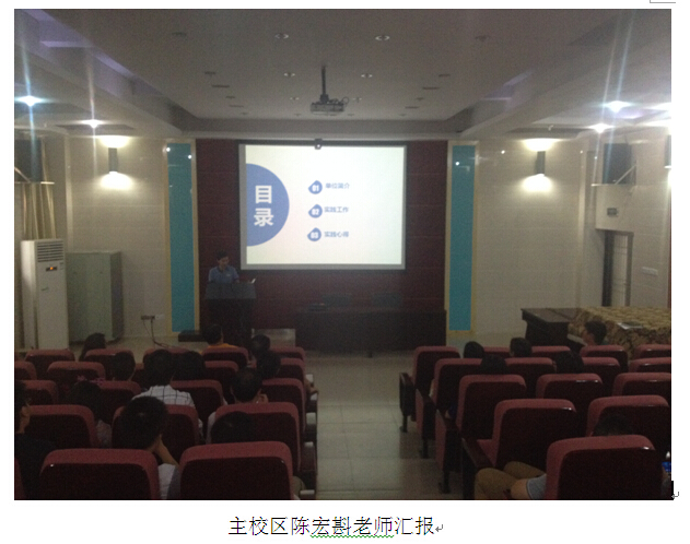为检验此次顶岗实习的效果,2015年8月30日下午,我校分两校举行了“暑假顶岗实习教师汇报会”。仇建平书记、周广大副校长、钟红常副校长、实训处、教务处、信息中心各处室主任、各专业部部长以及实训副部长参与了此次会议。